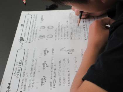 今日の授業では、メダカの卵はどのように変化してメダカになるのかを、観察記録をもとにまとめました。シャーレの中の卵は、常に顕微鏡で観察できるように先生が設置してくれていました。卵の中にはっきりと目が見えたり、ドキドキと動く心臓が判明したりしたときは、子どもたちはとても感動していました。孵化の後、少し大きめの水槽に移されたようです。メダカの孵化の観察を通して、生き物の体の仕組みについて理解が深まりました。