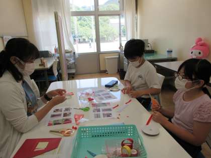 青少年赤十字の理念に則り、本校では「いつも心にレッドリボン」を合言葉に思いやりの心を育む様々な活動に取り組みます。人権週間に配布されると、子どもたちは毎年、ボロボロになっても身に付けて意識していました。今年度は、作成したレッドリボンをビニルケースに入れて身に付けてもらうことになりました。