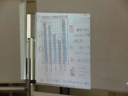 5月26日(金) 3年生算数の授業 公開日 2023/05/26 更新日 2023/05/26 できごと 今日の授業では、棒グラフの書き方を学習しました。表に表されている数値を棒グラフ化するにあたり、たて軸、横軸を何にするか、一目盛りの大きさをいくつにするかなどを、先生と考えを出し合いながらまとめていき、グラフにすることができました。