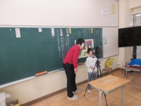 3年生は、風の強さと風の力で動く車の進む距離の関係について、実験用の車を使って調べました。これまでに、ゴムの力と車の進む距離の関係を学習してきているので、「強い風が吹くと進む距離は長くなる」と予想して、実験に取り組みました。結果をもとにまとめをする場面では、めあてと照らし合わせながら、子どもの言葉を生かす様子が見られました。