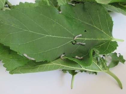 3年生が飼育中のお蚕も、長さが2センチメートル前後にまで成長しています。虫めがねで確認しなくても、もうすっかりお蚕らしい姿を見せてくれています。