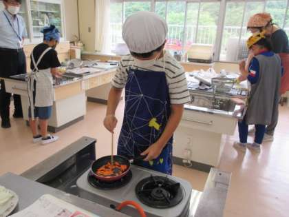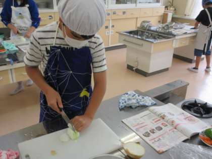 5年生と6年生とで違う内容の調理実習をしましたが、これまでの学習を生かし、学年毎に協力して一生懸命取り組んでいました。5年生にとっては、6年生の姿も良きお手本となりました。