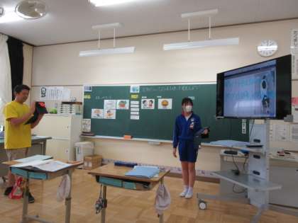 6年生は、自分の名前、住まい、学校名からスタートし、とっておきの宝物を画像付きで発表しました。二人とも、一生懸命学習して練習した成果がよく表れ、写真を添えたことでいかに大事に思っているかも伝わってきました。たくさんの人に見つめられる中、臆することなく堂々と発表したことに、また成長を感じました。