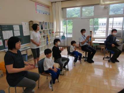 発表を聞いた1年生たちも、Wonderful!などの言葉を教わり、元気に感想を述べました。上級生の発表を見聞きする機会が楽しみになったと思います。