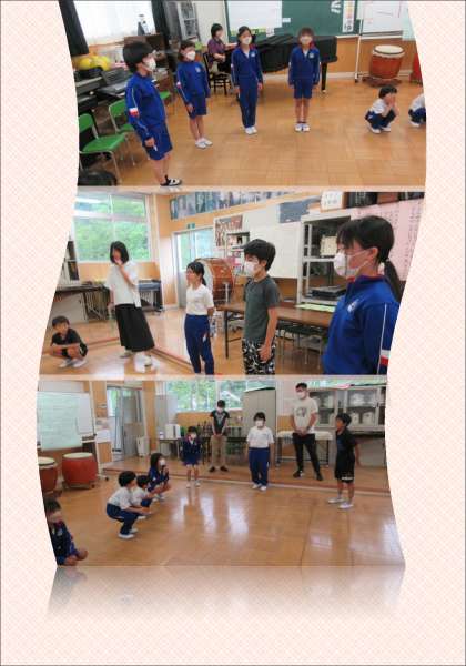 内容の一つ目は、小グループになって校歌1番を順番に歌うなどの活動をしました。きれいで大きな声も心掛け、1年生から6年生まで元気に歌うことができました。