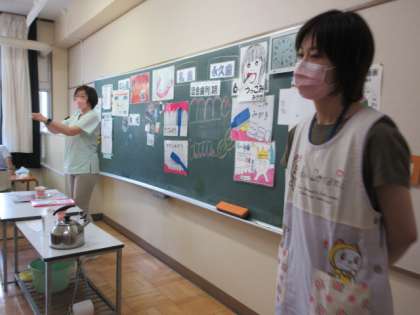 1年生から4年生、5・6年生の2教室に分かれ、それぞれ講師の方々が、乳歯から永久歯への生え替わりや8020のこと、歯の二大疾患とその予防のことなどを、とても分かりやすく教えてくださいました。