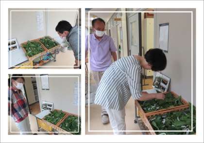 3年生のお蚕が、いよいよ繭作りに入りました。お蚕の表面の色や頭を上げた状態から、先生や業務員さんが「まぶしに移した方がいい」と判断し、3年生が決行しました。繭作りに入る前のお蚕を先生たちが名残惜しそうに見守る中、3年生は手に取ったお蚕を回転まぶしへと運びます。明朝には、ほぼ全てのお蚕が繭の中に入っていることでしょう。