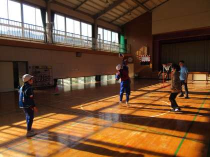 12月7日(木) 5・6年生体育の授業 公開日 2023/12/07 更新日 2023/12/07 できごと 5・6年生も、ゴール型のボール運動に取り組んでいます。今日の授業では、各自でドリブルやシュートを練習してからゲームをしました。めあては、ボールを持った時にどのように動くか、ボールを持たないときにはどのような行動が必要かを考えてプレーすることです。養護の先生も、審判役で参加してくれました。攻防を繰り広げる中で、仲間と力を合わせて競い合う楽しさや喜びを大いに味わってほしいと思います。