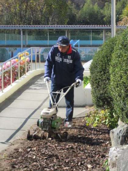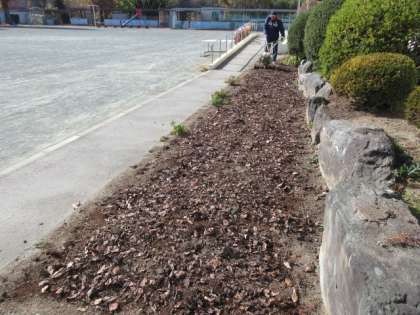 明日は、全校でパンジーの定植を行います。冬から翌年の春の学校生活を華やかに彩るパンジーは、日野小の風物詩になっています。業務員さんが種を蒔き、発芽後も暑さ・寒さ対策をして育ててくれたパンジーの苗を、子どもたちは団別に協力しながら一つ一つ丁寧に植えていきます。その前段階として、今日は土に腐葉土を混ぜ込み、ふかふかにしてくれました。