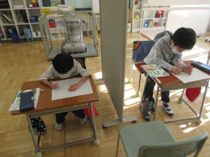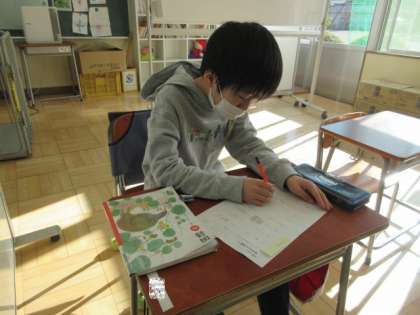 1月26日(金) 1・4年国語の授業 公開日 2024/01/26 更新日 2024/01/26 できごと 1年生は、ひらがなをスラスラと書けるようになり、先生のお手本を見ながら文章を正しく書き写すこともできています。4年生は、「ひとつの花」の文章を読み取り、質問に対する答えを正しく見つけて書くことができています。とてもよく集中し、じっくりと取り組むことができました。