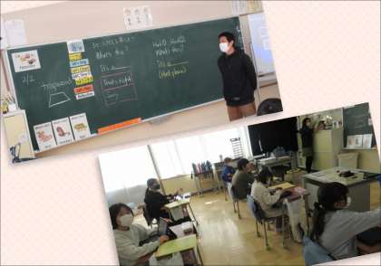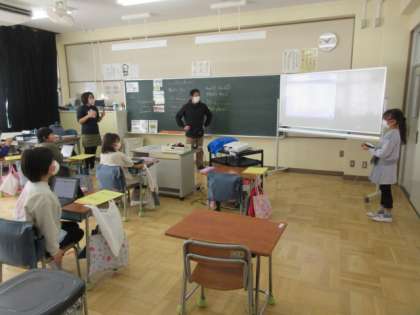 今日の授業では、3ヒントクイズをつくって出し合い、皆で楽しみました。出題するものについて、色や形・大きさをはじめ食べ物なのか生き物なのかを3つのスライドにまとめました。「brown&yellow、circle、food、What's this?」など、これまで学習した様々な言葉を使い、子どもたちは堂々と出題し、楽しそうに答えていました。