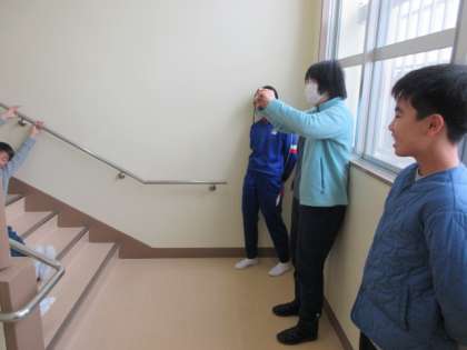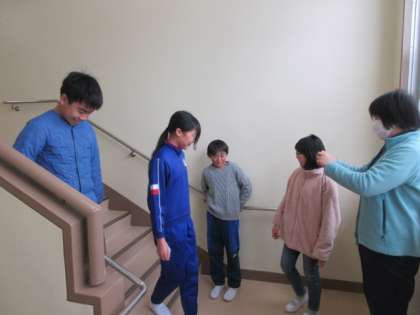 2月5日(月) 5・6年生、思い出写真の撮影 公開日 2024/02/06 更新日 2024/02/06 できごと 玄関で写真撮影をしていた5・6年生、今度は階段で作戦会議中です。担任の先生が構えたタブレットPCの先には、階段でポーズを取る5年生の姿が。その微笑ましい姿を見守る6年生の表情は、優しかったです。