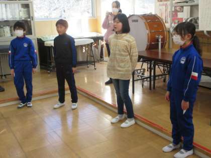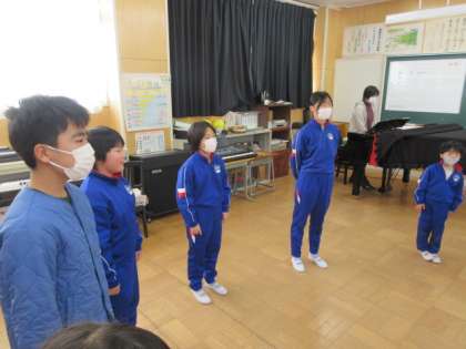 ペア練習により、話し合ったことがしっかりと出せていることを確認した後は、全員で輪になって『すてきな友達』を歌いました。マスク越しにも大きく口を開き、一生懸命歌っている様子が伝わってきました。強調したいところに向けて声をだんだん大きくし、気持ちを込めて歌う姿は、とても気持ちよさそうでした。“悲しいときも 苦しいときも 仲間がいればつらくない”そんな素敵な歌詞を胸に、一日の良いスタートを切ることができました。