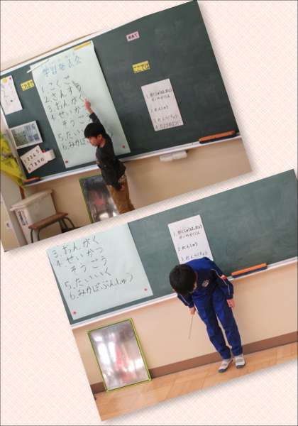 1年生と4年生は、授業参観で1年間の学習成果を発表します。今日は、進行の練習を中心に、各教科で発表することについて動きの確認などに取り組みました。1年生も4年生も、落ち着いて言葉を発し、礼も丁寧にできています。何より、以前聞かせてもらったときよりも格段に上手になっていることに感心しました。保護者の方々に見ていただくことを、とても楽しみにしている様子でした。