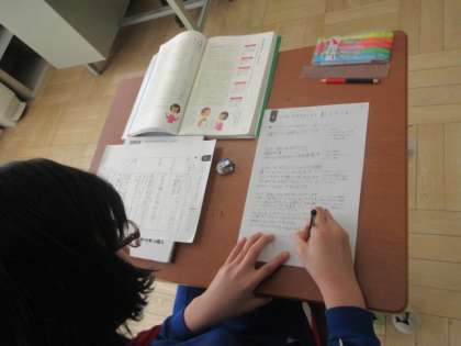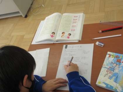 2月20日(火) 5年生国語の授業 公開日 2024/02/20 更新日 2024/02/20 できごと 「この本、おすすめします」の学習に取り組んでいる5年生。今日の授業では、各自選んだ本について、紹介文の下書きをしました。 以前、4年生が国語の授業の一環で、お薦め本に添える「ポップ」作りとその紹介をしました。5年生も、4年生で体験積みと思います。これまでの学習を生かしつつ、5年生ならではの表現力で本の魅力を紹介できるとよいと思います。