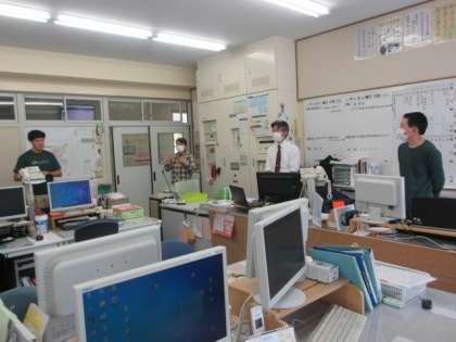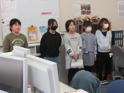 4年生は、「もしもの時にそなえよう」の学習を通してまとめたことを職員室で発表しました。子どもたちが取り上げたもしもの時は、それぞれ地震、津波、大雨、大雪など様々です。子どもたちは、報道などを通して様々な自然災害を知り、羽咋市立粟ノ保小学校との交流を通して被災の大変さを見聞きしています。そうしたことをベースに、特に自分が関心をもったことについて防災の意識で本で調べました。相手意識をもった発表に、聞き手の先生方からたくさんの賞賛と拍手が贈られました。