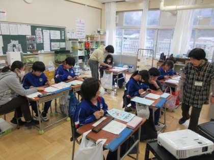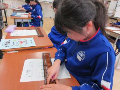 そろばんの珠のはじき方、基準となる位置、繰り上がりや繰り下がりの仕方などを丁寧に教えていただき、練習するうちに次第に要領を得てスムーズに扱えるようになりました。先生からの読み上げ算にもしっかりと対応することができました。ここで学ばせたい計算について、何も見ずに数を読み上げる講師の先生はさすがです。昨年度に続いて指導していただいた4年生とともに、初めてのそろばんに挑戦する3年生も、とても意欲的に取り組みました。