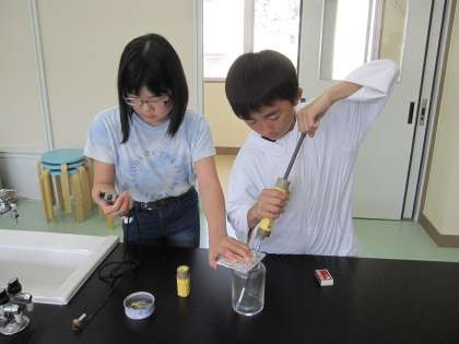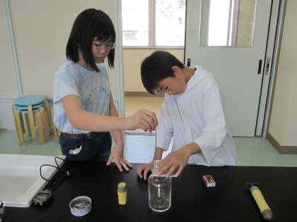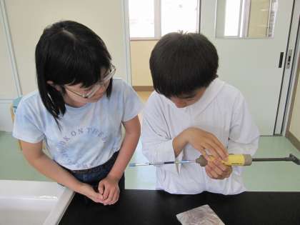 4月15日(月)6年理科 物の燃え方と空気(その2) 公開日 2024/04/15 更新日 2024/04/15 できごと ろうそくが燃える前と燃えた後の空気を気体検知管を使って調べました。 物が燃えると、空気中の酸素の一部が使われて、二酸化炭素ができることがわかりました。