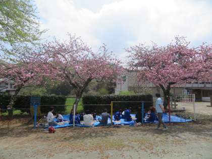 4/16 お花見給食 公開日 2024/04/16 更新日 2024/04/16 できごと 今日の給食は桜の見ながらのお花見給食を全校でしました。青空のもと、そして満開の桜のもとで食べる給食はいつもにも増しておいしく感じました。よい思い出になりました。