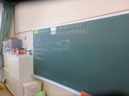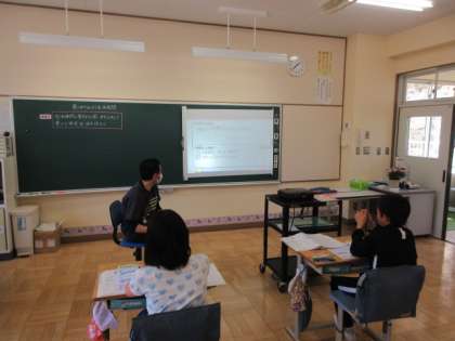 4年生は、植物の種を植えるための気温の計測をしています。「百葉箱」という言葉を教わりました。5年生は算数で角の大きさを考える学習、6年生は家庭科で、規則正しい生活時間のとりかたについて、自分の生活時間を振り返って意見を述べ合う学習に取り組んでいます。