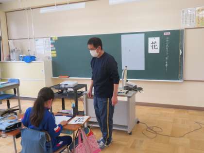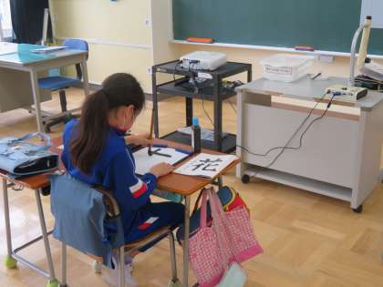今日の4年生の書写の課題は「花」でした。はねに気を付けて書こうをめあてに熱心に取り組んでいました。