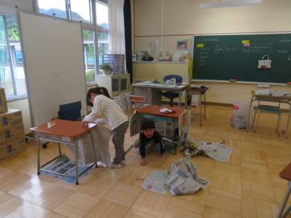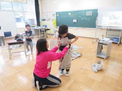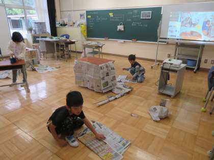 5/9 低学年図工の授業 公開日 2024/05/09 更新日 2024/05/09 できごと 今日の図工は「しんぶんとなかよし」の学習で、新聞紙を使って楽しく作ろうをめあてに活動をしていました。新聞紙を色々と加工し楽しく活動に取り組んでいました。みんな思い思いの作品を仕上げられました。