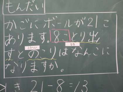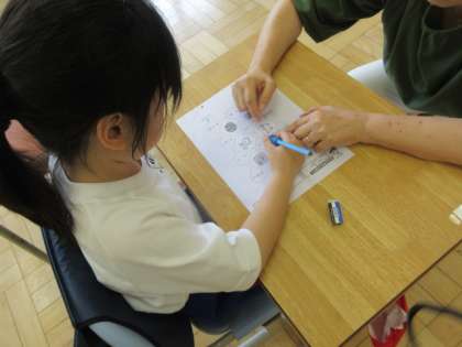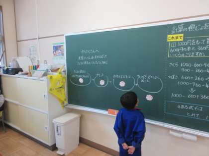 1年生はひらがなの学習、迷路をたどりながらひらがなを学んでいます。2年生は算数の学習、大事なところをだと思うところを意見を出し合って学習を進めています。みかぼ学級では、できた課題を自分で黒板に花丸を付けています。頑張って学習した成果を自分の目で確認することができ、とてもうれしそうでした。