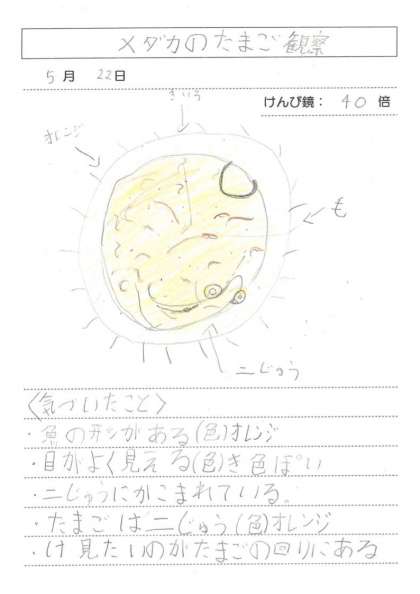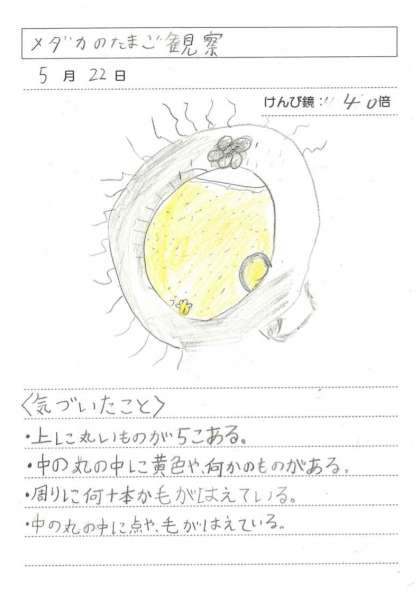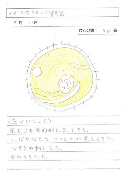 5月22日(水)5年理科 魚のたんじょう(その2) 公開日 2024/05/22 更新日 2024/05/22 できごと 目や尾がわかるようになりました。心臓が動いていて血管の中を血液が流れているのがわかりました。