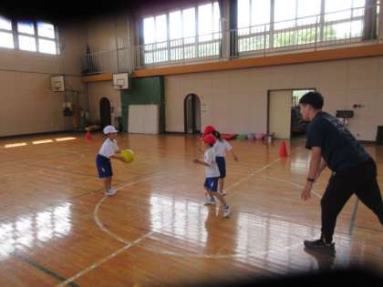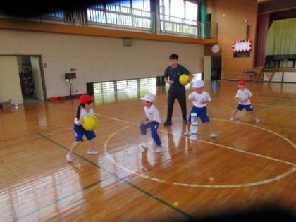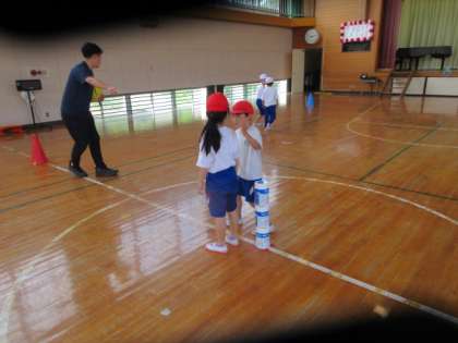 5/24 1・2年体育 公開日 2024/05/24 更新日 2024/05/24 できごと 1・2年生は体育館で、ボールを使った運動をしています。円の内側に塔を建てて、塔を守るチームと、ボールを当てて塔を壊すチームに分かれています。みんな夢中で運動を楽しんでいます。2年生の児童が1年生に優しく教えたり、ボールを譲り合ったりと、日野小の子どもたちのよさがここでもあらわれています。
