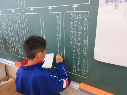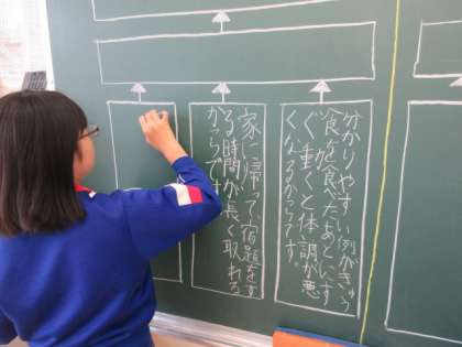 6/4 6年生国語の学習 公開日 2024/06/04 更新日 2024/06/04 できごと 6年生は国語の説明文の学習に取り組んでいます。今日は、「昼休みは短い方がよい」という考えについて、自分なりにその根拠を文章でわかりやすく示す学習に取り組んでいます。読み手に分かりやすく伝えるため、まずは構造的にプリントにまとめていました。「早く帰れてその分たくさん家で学習できる」「食べた後たくさん動くのは体によくない」など自分なりに考えてまとめています。