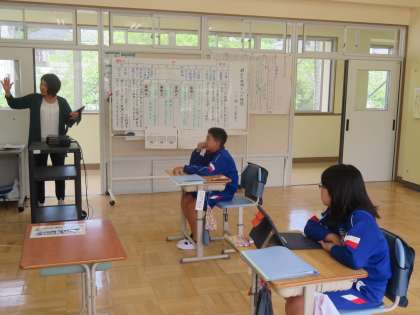 6/4 6年生外国語の授業 公開日 2024/06/04 更新日 2024/06/04 できごと 今日の外国語は「世界の学校や子どもたちの生活などについて考えよう」をめあてに学習していました。先生が見せてくれた外国の学校の画像をもとに、日本との文化に違いについて考えることができました。