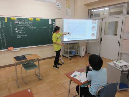 1・2年生は学級活動で、人権週間の振り返りに取り組んでいます。みかぼ学級は、社会科で高地に暮らす人の生活について学習しています。東京と嬬恋のきをんの変化を表すグラフから、東京の方が暑いことに気付きました。この後、「どのくらいきをんが違うのか」をグラフからさらに確かめ、高地に暮らす人が、どのような生活をしているかを想像し、実際に資料から確かめていきます。