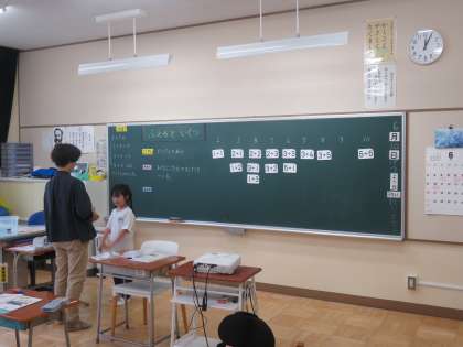 6/10 1年生算数の授業 公開日 2024/06/10 更新日 2024/06/10 できごと 1年生の算数はたし算の学習をしています。今日は計算カードを使って同じ答えになる計算の式を探していました。黒板に計算カードをまとまりごとに貼ることができました。