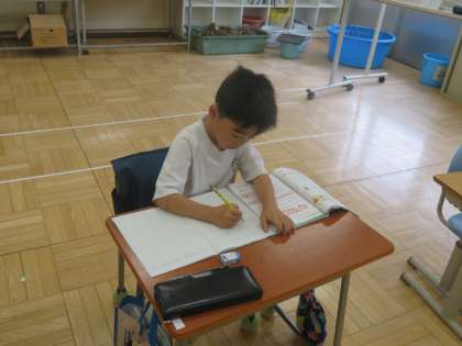 2年生の算数は「100より大きな数」の学習をしています。学習内容もほぼ終わり、今日は明日のテストへ向けてドリルやプリントを中心に復習をしていました。集中して取り組んでいました。