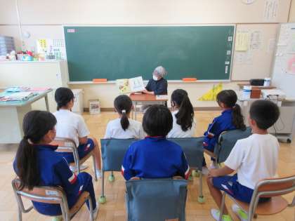 今日の業前は、ボランティアの方にお世話になって読み聞かせをしてもらいました。みんな読み聞かせが大好きです。低学年の読み聞かせでは、読んでもらった絵本が気に入ったようで、ボランティアの方に借りていました。後で自分で読んでみるようです。「本は心の栄養」です。たくさん本を読んでほしいと思います。