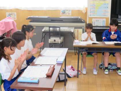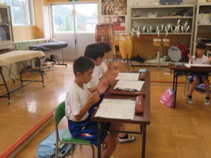 今日の音楽は「手拍子のリズムアンサンブルを楽しもう」ということで、楽しいマーチの曲の合わせながら、みんなで手拍子をして音楽を楽しんでいました。