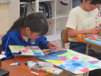 6/21 高学年図工の学習 公開日 2024/06/21 更新日 2024/06/21 できごと 今日の図工は4年生は「まぼろしの花」の絵の制作、5・6年生はクルクルクランクの作品の制作をしていました。どの子も作業がだいぶ進み、完成まであと少しです。