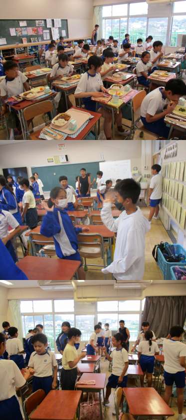 道具を片付けた後、一緒に給食を食べ、その後レクをして交流しました。