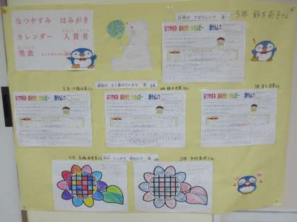 9/2 夏休みの歯磨きカレンダー 公開日 2024/09/02 更新日 2024/09/03 できごと 夏休みに子どもたちががんばった歯磨きカレンダーの中から、よくできていたものを選んで県室前に掲示してあります。歯は一生のもの、きちんと歯を磨いて丈夫な歯をこころがけてほしいです。