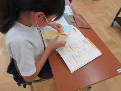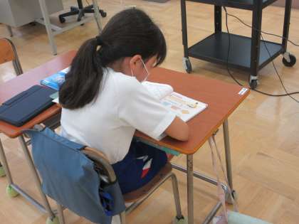 9/3 2校時4年生算数の学習 公開日 2024/09/03 更新日 2024/09/03 できごと 4年生は算数で図形の学習に取り組んでいます。ひし形を対角線で4つの三角形に分けたとき、直角三角形が出来上がるのはなぜか考え、ひし形の対角線の特徴について学んでいました。この後、平行四辺形を実際に敷き詰めて、どんな図形ができるかを確かめようとしています。