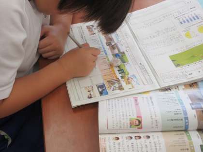 9/4 2校時5年生社会科の学習 公開日 2024/09/04 更新日 2024/09/04 できごと 5年生は社会科で庄内平野の米作り農家の工夫や努力について学習しています。今日は1年間の米作り農家の仕事について、どのような仕事をしているのかをまとめていました。総合的な学習の時間でも米作りについて調べているところなので、自分たちが総合的な画家羽州の時間で調べたことと比較しながら考えています。