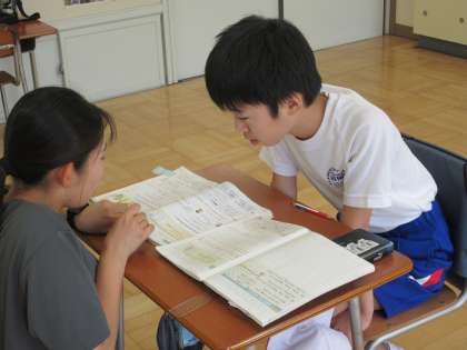 みかぼ学級では5年生が算数で概数の学習をしています。概数そのものは生活で活かされていますが、自分でそれを求めて活用することは生活経験としてあまりなかったようで、個別対応で丁寧に学習を進めています。千の位の概数が求められたときは、先生とハイタッチしていました。