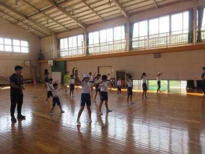 今日の1校時は全校で運動会で披露する表現「よさこいソーラン」の練習をしました。基本となる動きをパートに分けて練習しています。まだまだ練習が必要です。なお本日の練習の様子はリモートで欠席者につなぎ、動きの確認をしてもらっています。