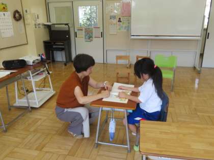 9/5 4時間目1年生国語の学習 公開日 2024/09/05 更新日 2024/09/05 できごと 今日の国語は昨日に引き続き「おむすび ころりん」の学習に取り組んでいました。リズムよくよむというめあてのもの先生と一緒に音読をしていました。