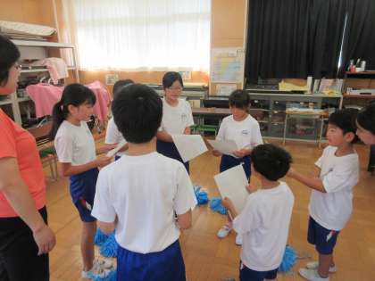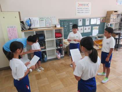 今日の業前は運動会の応援合戦の練習です。団長を中心に、セリフや振り付け、歌の原案を考え、今日は声あわせをしました。ふだんから縦割り活動がしっかりできているので、練習もスムーズに行われています。当日に向けてさらに熱のこもった声を響かせてくれることでしょう。