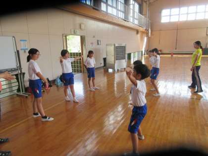 9/6 1校時運動会表現練習 公開日 2024/09/06 更新日 2024/09/06 できごと 1校時は運動会で披露する「よさこいソーラン」の練習です。今日で1番の振り付けまで終了することができました。全体で通しながら、班別に分かれて見合い、アドバイスし合う活動も行っています。また、今日もリモートで欠席児童に配信しいっしょに参加してもらっています。勇壮な曲に併せて颯爽と踊っています。本番に向けてまだまだ練習です。