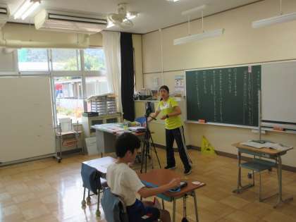 9/6 3校時みかぼ学級自立活動の学習 公開日 2024/09/06 更新日 2024/09/06 できごと みかぼ学級では運動会に向けて様々な活動の練習を行っています。今日ははちまきの結び方を練習していました。最初は先生を練習台にして結んでみて、その後自分でもやってみました。リボン結びを教えてもらい練習しています。また、欠席している児童へのリモート学習も同時に行われています。