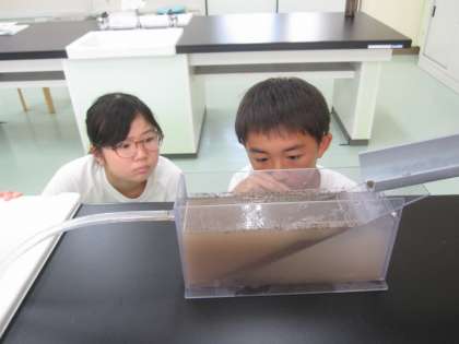 土を水に流しこんで、層ができるか調べました。