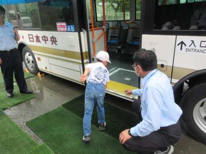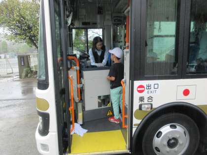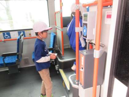 10/8 3校時2年生「路線バスの乗り方教室」 公開日 2024/10/08 更新日 2024/10/08 できごと 今日は平井小学校の2年生をお迎えしていっしょに「バスの乗り方教室」を開催しました。実際に日野小の車庫前で、切符の取り方、降車ボタンの押し方、運賃の支払い方などを教えていただきました。またバスの機能についても説明していただきました。子どもたちは興味津々で話を聞いたり体験したりしていました。