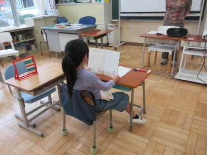1年生は国語で、数字の読み方の学習をしています。「1」を「いち」と読んだり「ひと」つと読んだり「いっ」ぴきと読んだりします。普段の生活経験からすぐに読めるようになっています。こうしてみると日本語って難しいと感じます。